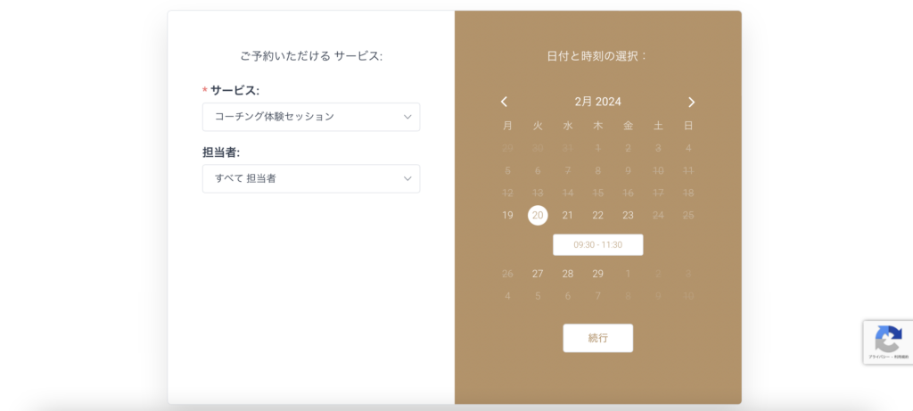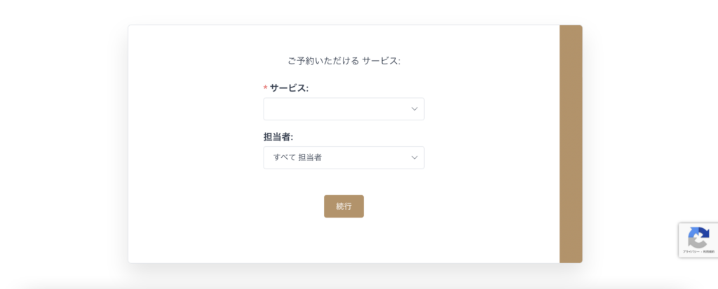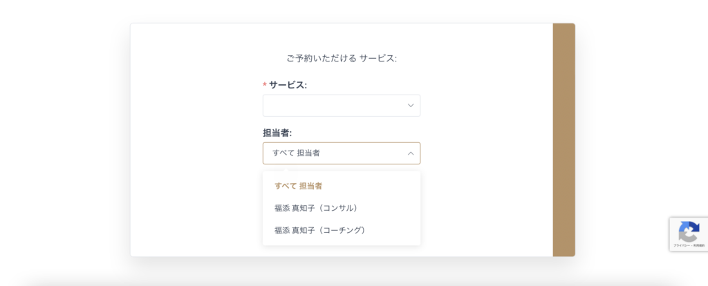 事前設定を行いましたので、予約フォームでサービス・担当者を選択いただけるようになっております。